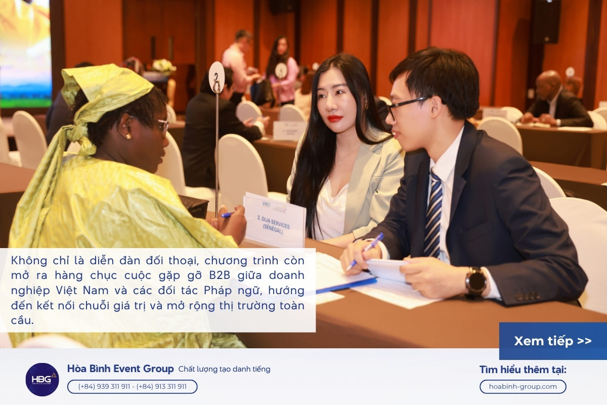 Với vai trò đồng hành tổ chức, HBG tự hào góp phần kiến tạo không gian đối thoại chuẩn mực, nơi các nhà lãnh đạo, doanh nghiệp và tổ chức quốc tế cùng kết nối, chia sẻ tầm nhìn và thúc đẩy quan hệ hợp tác kinh tế – ngoại giao giữa các quốc gia Pháp ngữ.