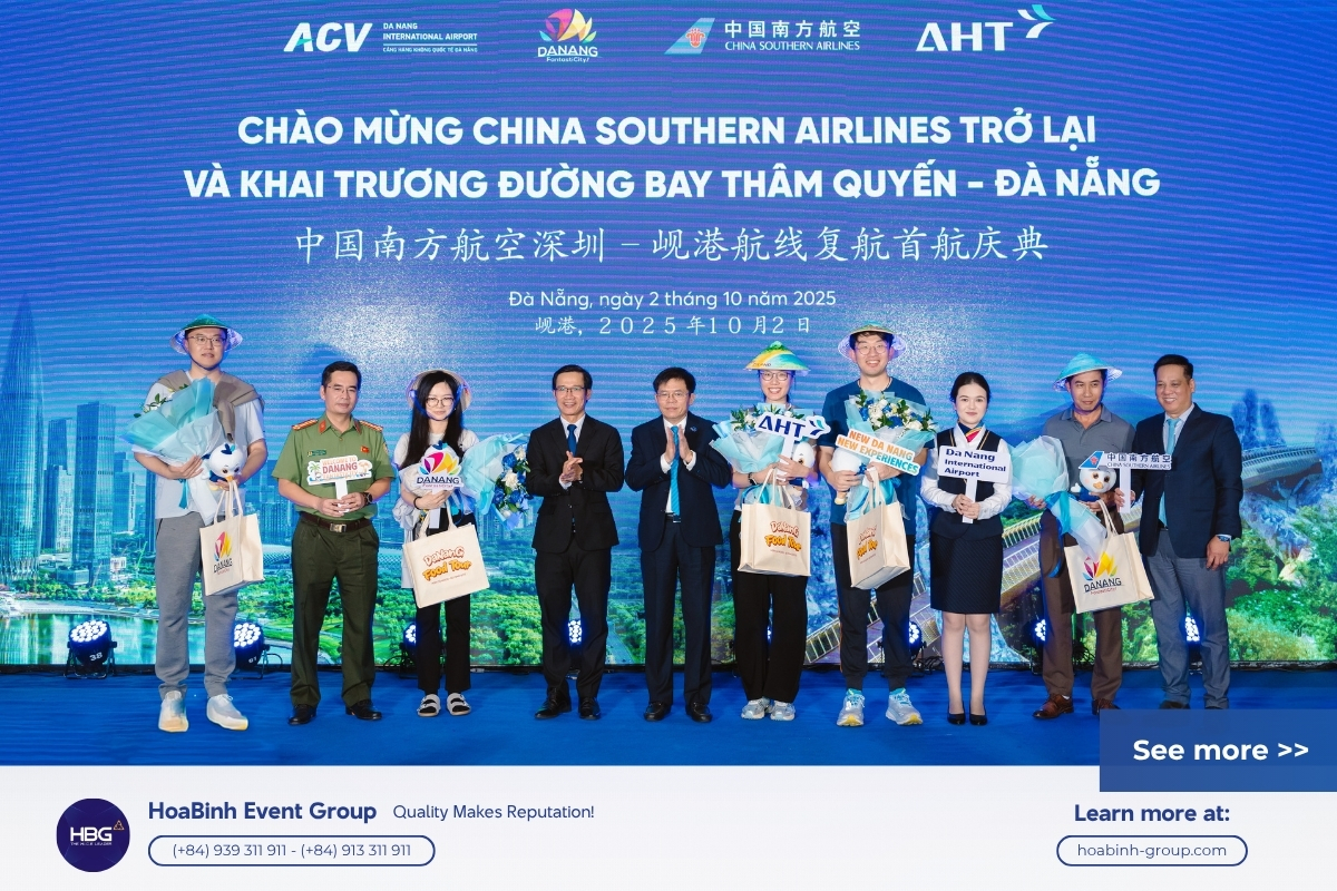 On the evening of October 2, the flight from Shenzhen (China) landed at Da Nang International Airport in a vibrant and solemn atmosphere. This marks a strong expectation for the recovery and robust growth of the Chinese tourist market – which for many years has consistently ranked second in international arrivals to Da Nang, contributing to the city’s tourism breakthrough in the coming period.