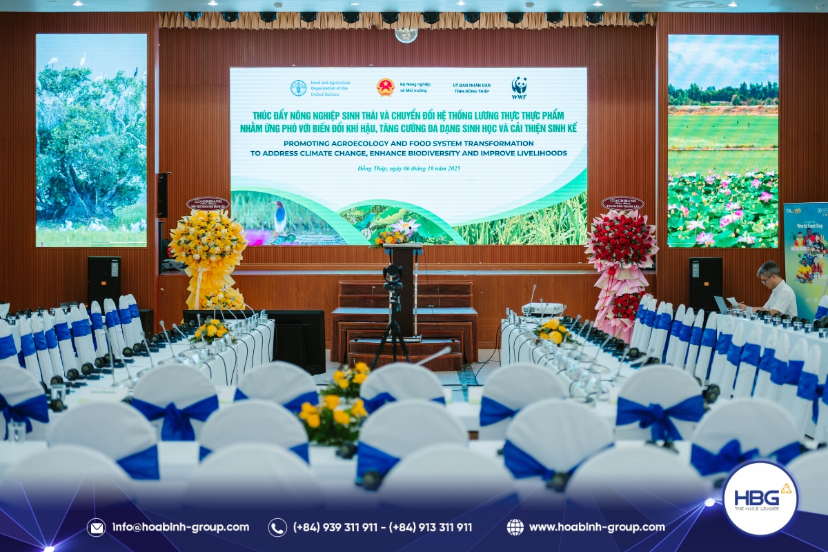 HoaBinh Event Group (HBG) was honored to accompany and organize the full MICE tour for the program “Promoting agroecology and food system transformation to address clinic change, enhance biodiversity and improve livelihoods”, jointly organized by the Ministry of Agriculture and Environment along with the People’s Committee of Đồng Tháp Province.