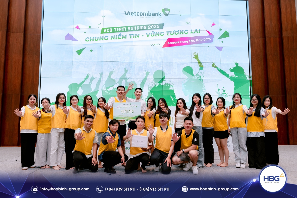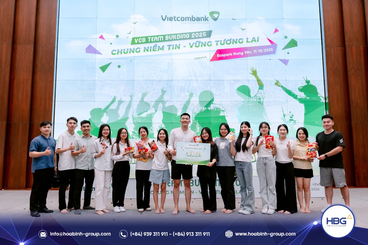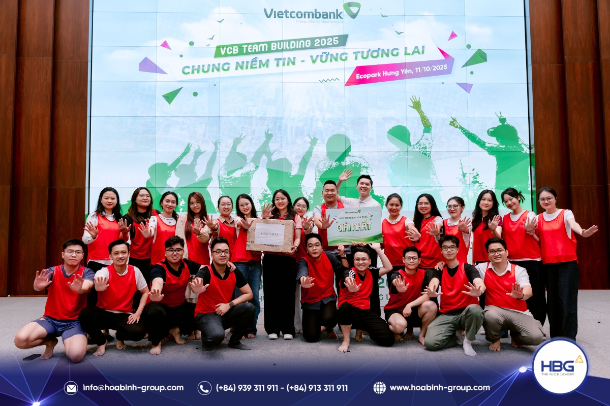 Once again in 2025, HoaBinh Event Group (HBG) was honored to accompany Vietcombank on the journey “Sharing Trust – Shaping the Future”, delivering a comprehensive teambuilding program for 250 employees at Ecopark, Hung Yen.