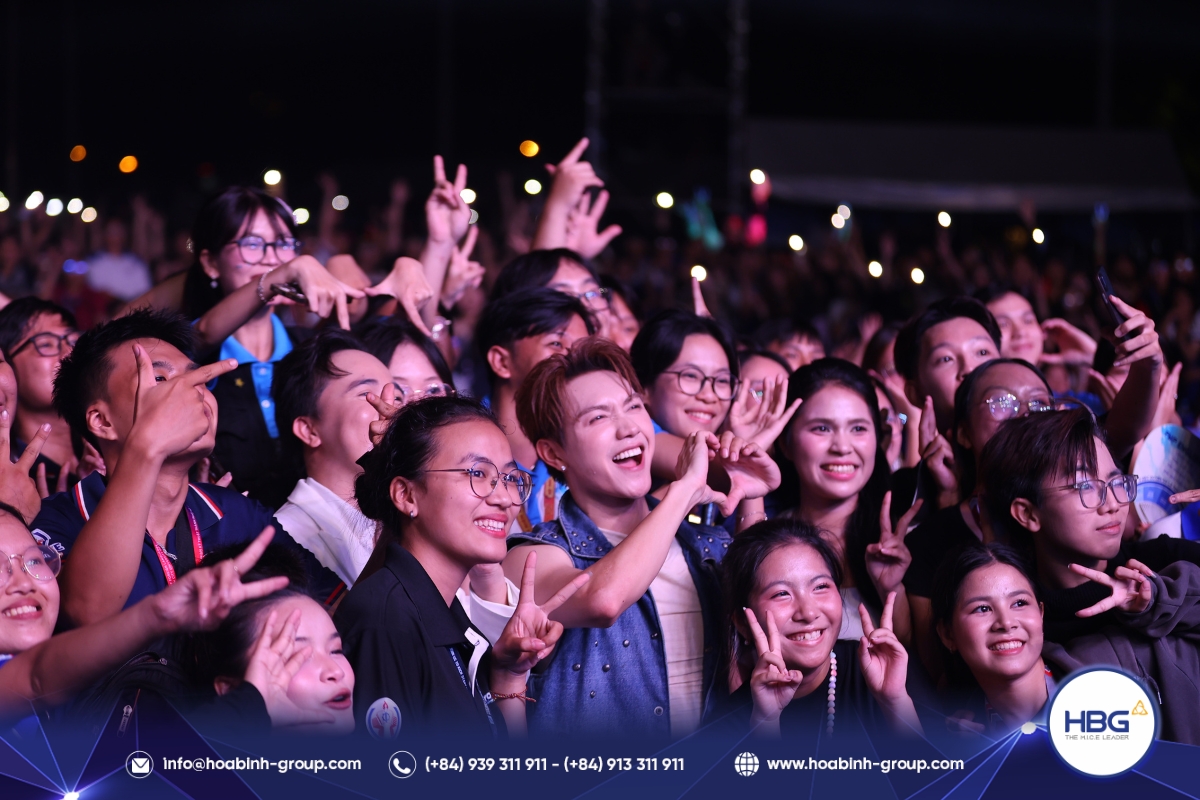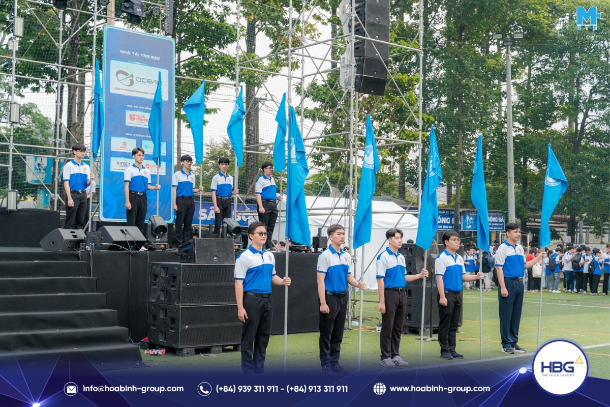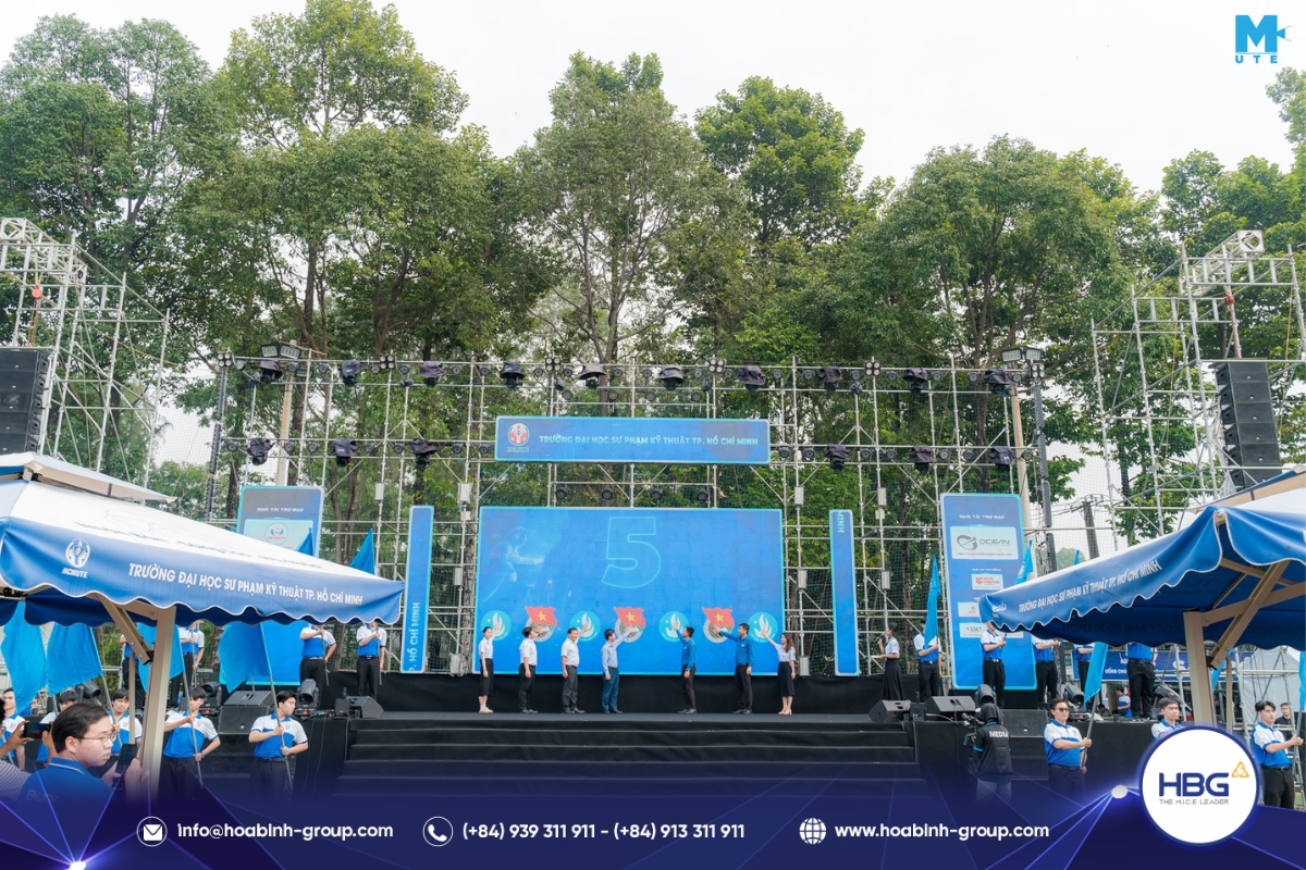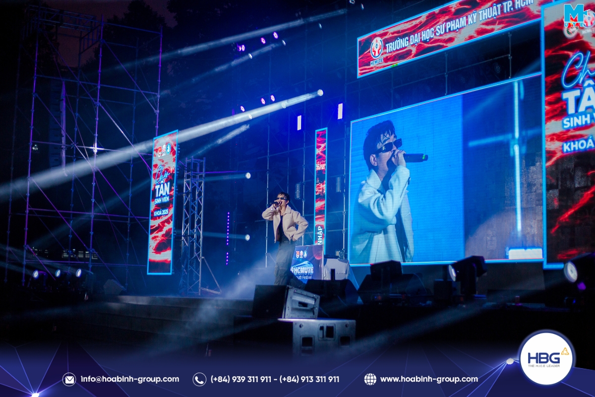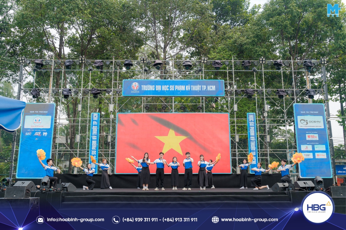 Hòa Bình Event Group (HBG) vinh dự đồng hành cùng chương trình, cung cấp toàn bộ hệ thống sân khấu, âm thanh – ánh sáng, LED, gian hàng và hàng rào an toàn, góp phần tạo nên một không gian hiện đại, bùng nổ cảm xúc cho hơn 3.000 sinh viên tham dự.