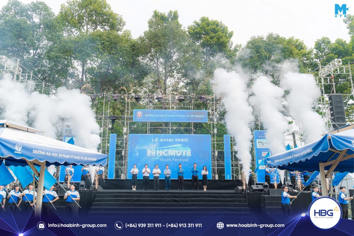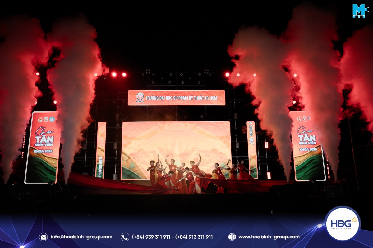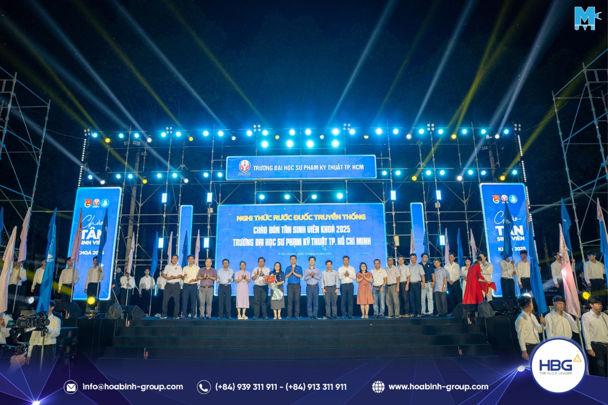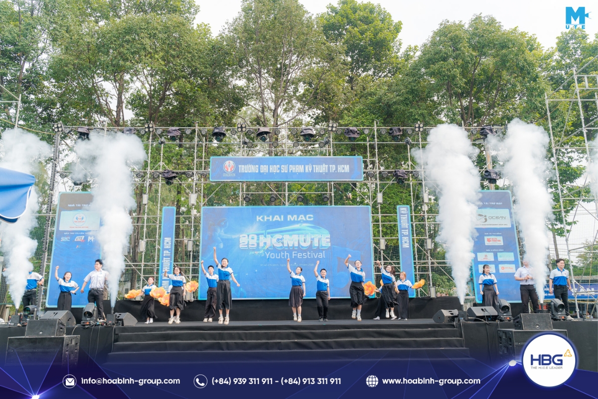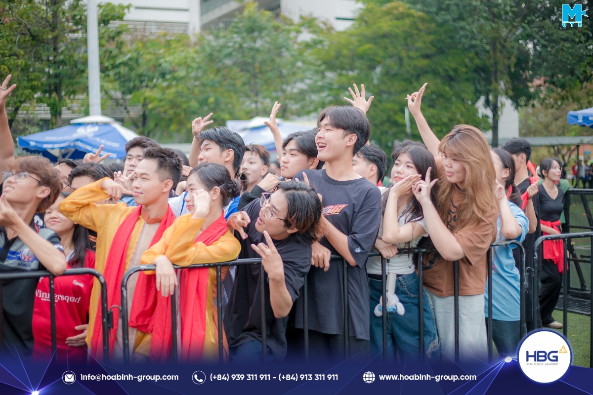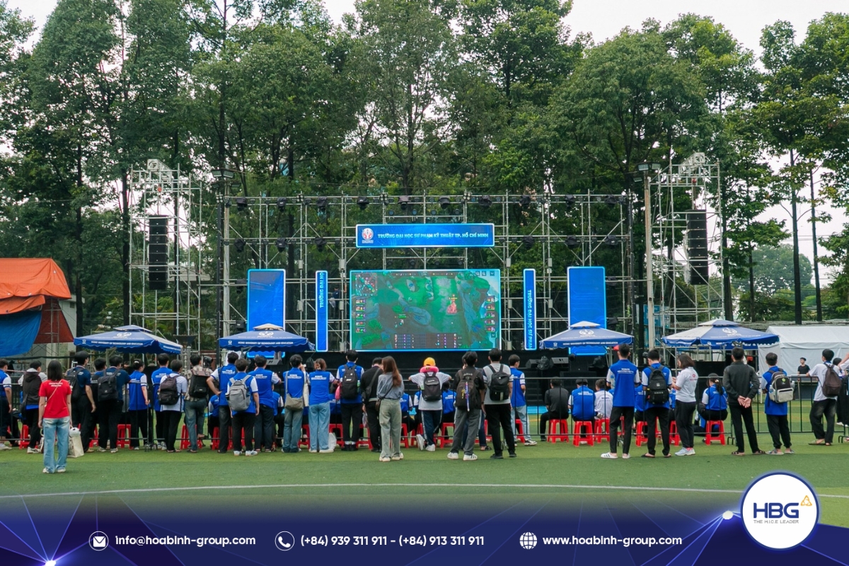 Hòa Bình Event Group (HBG) vinh dự đồng hành cùng chương trình, cung cấp toàn bộ hệ thống sân khấu, âm thanh – ánh sáng, LED, gian hàng và hàng rào an toàn, góp phần tạo nên một không gian hiện đại, bùng nổ cảm xúc cho hơn 3.000 sinh viên tham dự.