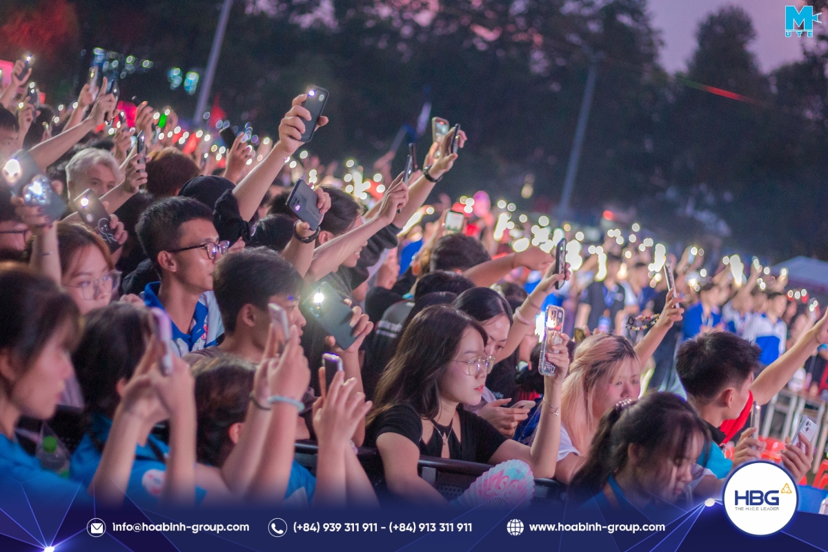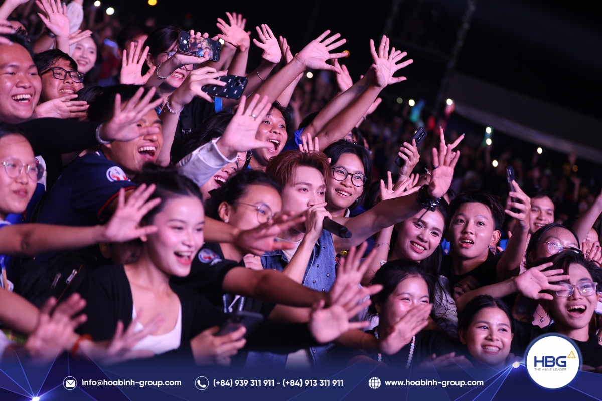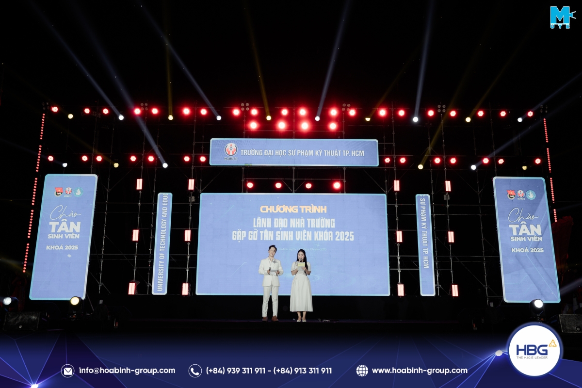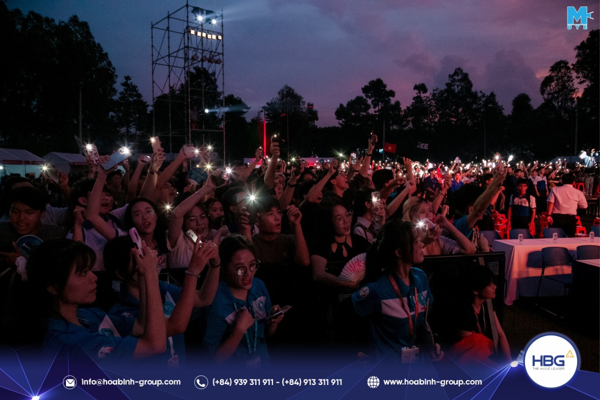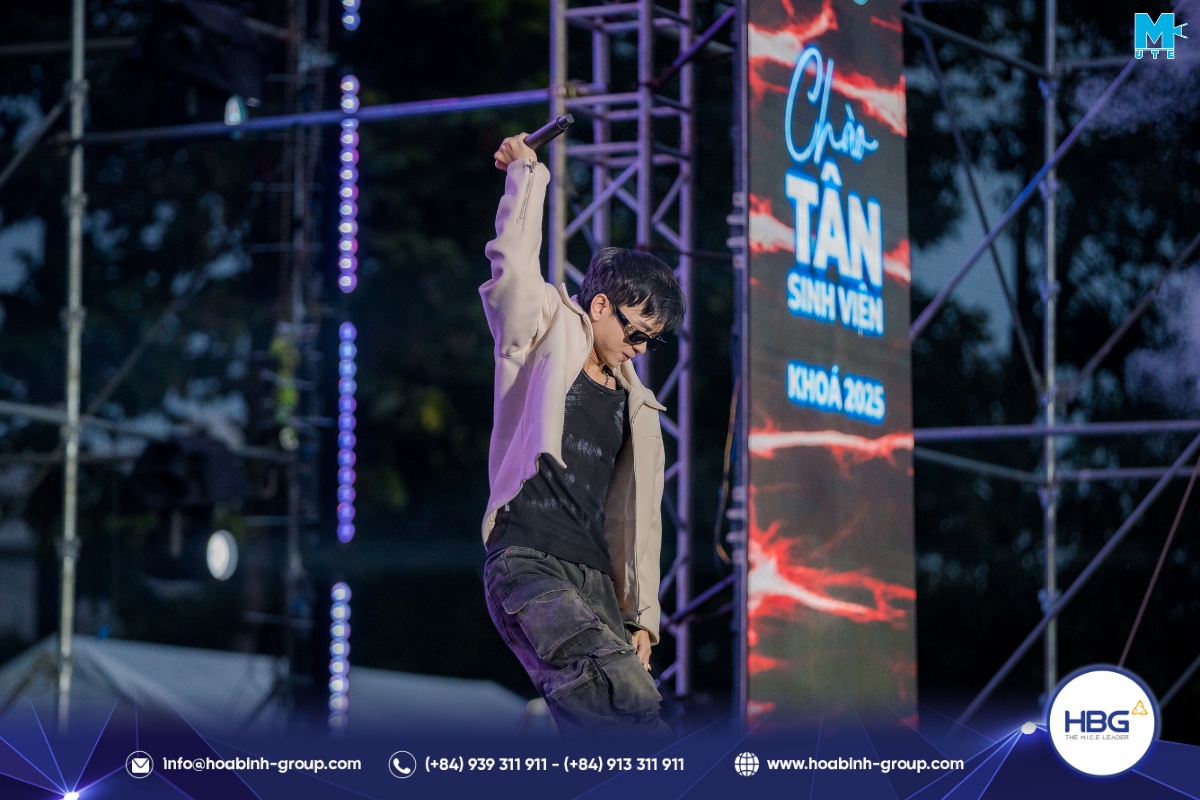 Hòa Bình Event Group (HBG) vinh dự đồng hành cùng chương trình, cung cấp toàn bộ hệ thống sân khấu, âm thanh – ánh sáng, LED, gian hàng và hàng rào an toàn, góp phần tạo nên một không gian hiện đại, bùng nổ cảm xúc cho hơn 3.000 sinh viên tham dự.