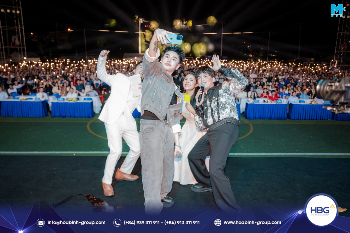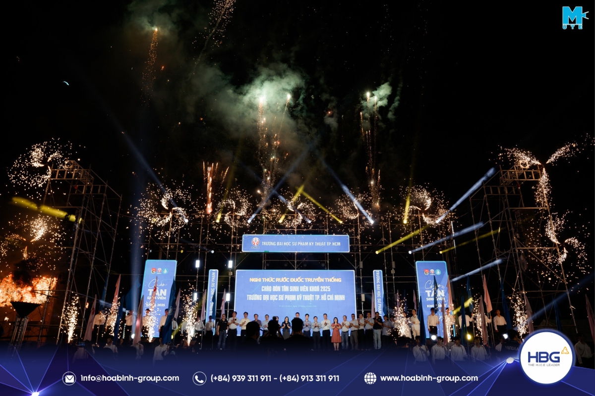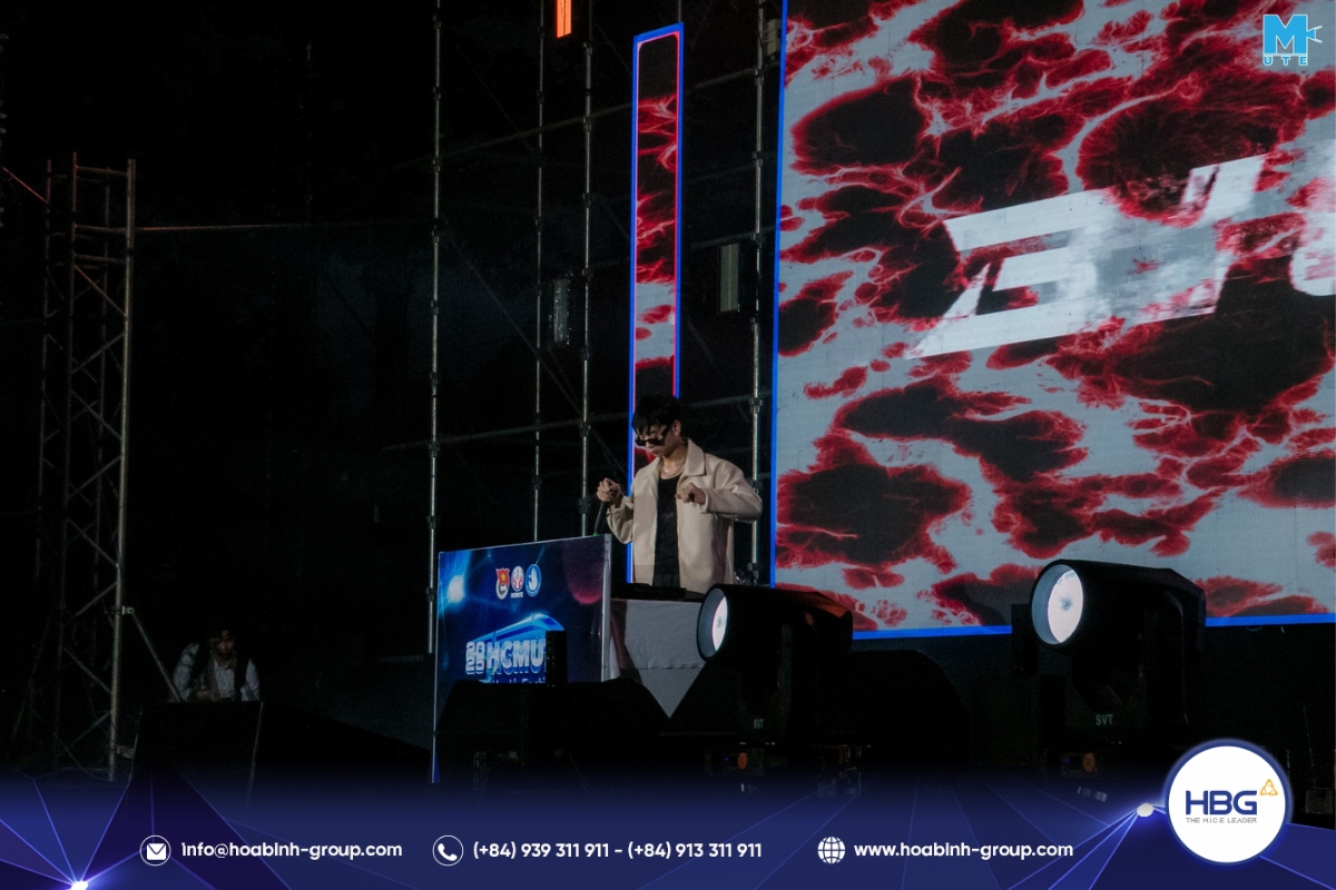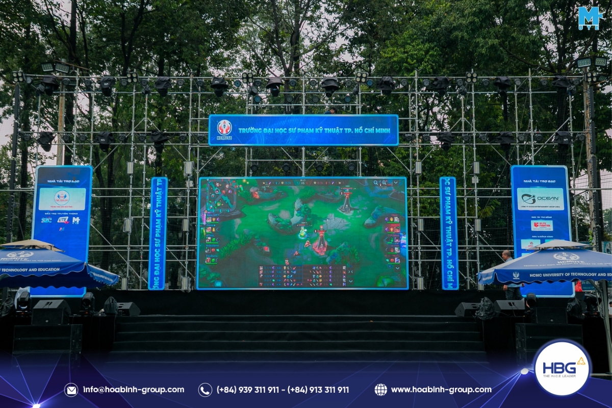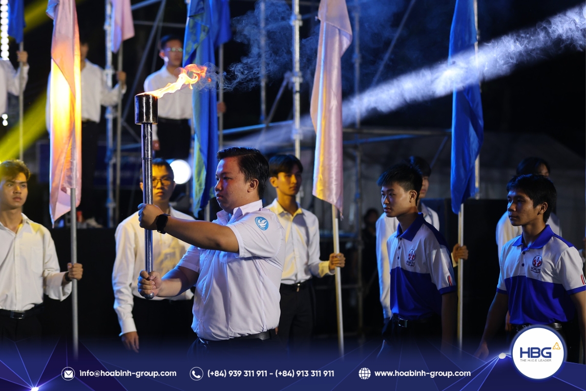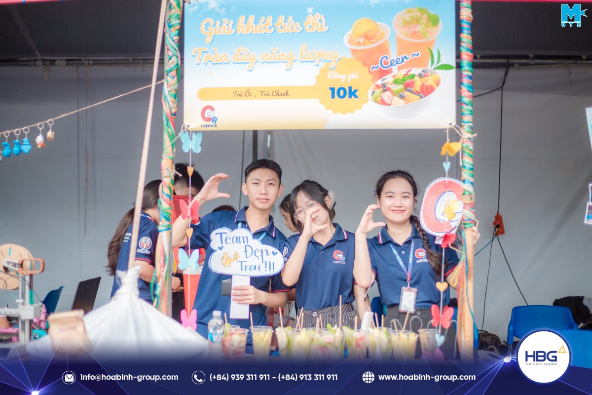 Hòa Bình Event Group (HBG) vinh dự đồng hành cùng chương trình, cung cấp toàn bộ hệ thống sân khấu, âm thanh – ánh sáng, LED, gian hàng và hàng rào an toàn, góp phần tạo nên một không gian hiện đại, bùng nổ cảm xúc cho hơn 3.000 sinh viên tham dự.