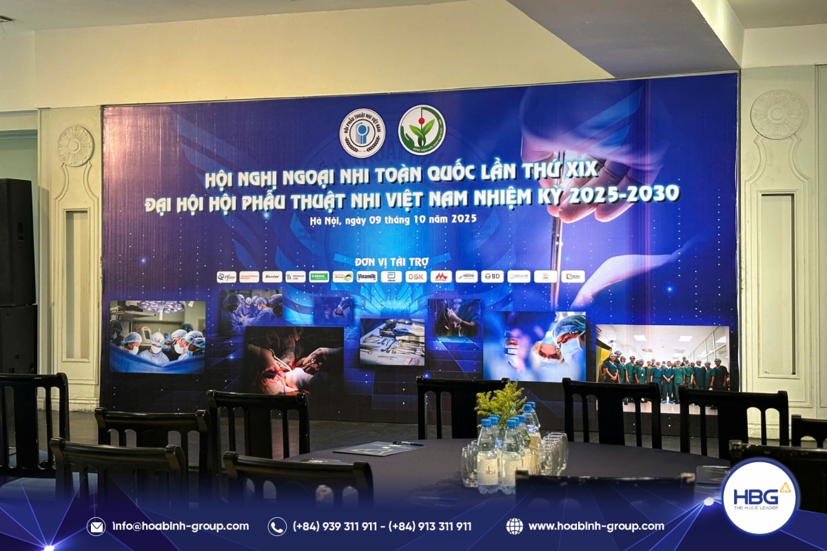 Hòa Bình Event Group (HBG) vừa đồng hành cùng Đoàn đại biểu của Bệnh viện Nhi TP. HCM tại Hội nghị Ngoại nhi toàn quốc lần thứ XIX với chủ đề “Phẫu thuật Nhi khoa và Chăm sóc toàn diện”. Hội nghị là nơi các chuyên gia hàng đầu cả nước chia sẻ kinh nghiệm và cập nhật tiến bộ mới, góp phần nâng cao chất lượng điều trị ngoại khoa cho trẻ em Việt Nam.