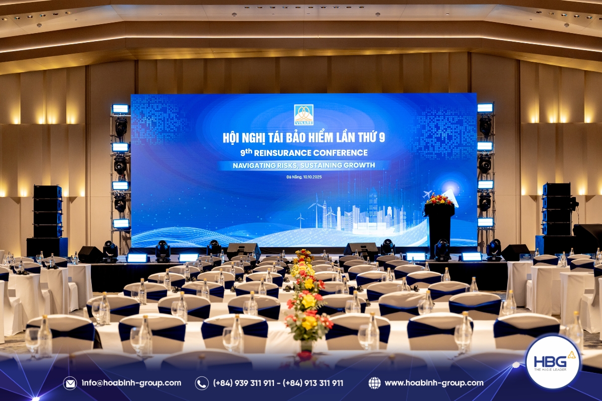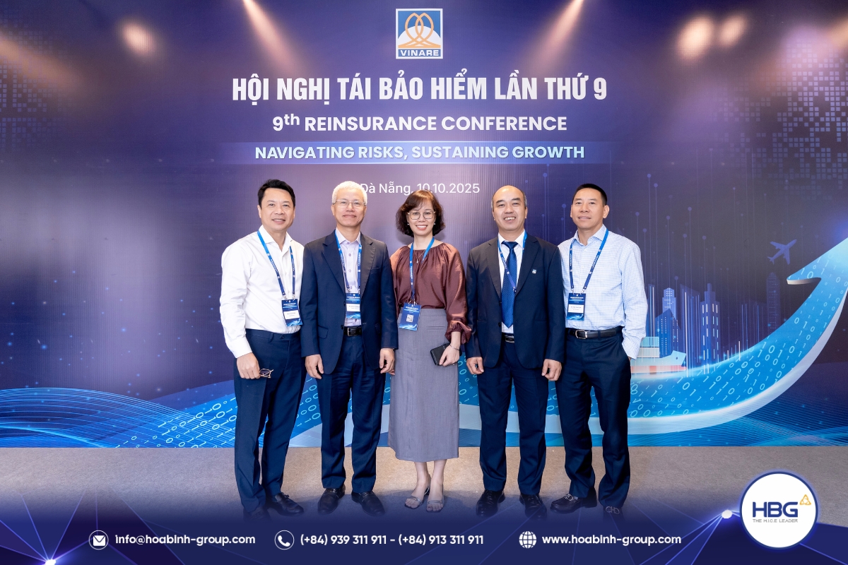 Vừa qua, Hòa Bình Event Group (HBG) vinh dự là đơn vị tổ chức cho Hội nghị Tái bảo hiểm lần thứ 9, do Tổng công ty cổ phần Tái bảo hiểm quốc gia Việt Nam (VINARE) chủ trì tại thành phố Đà Nẵng.