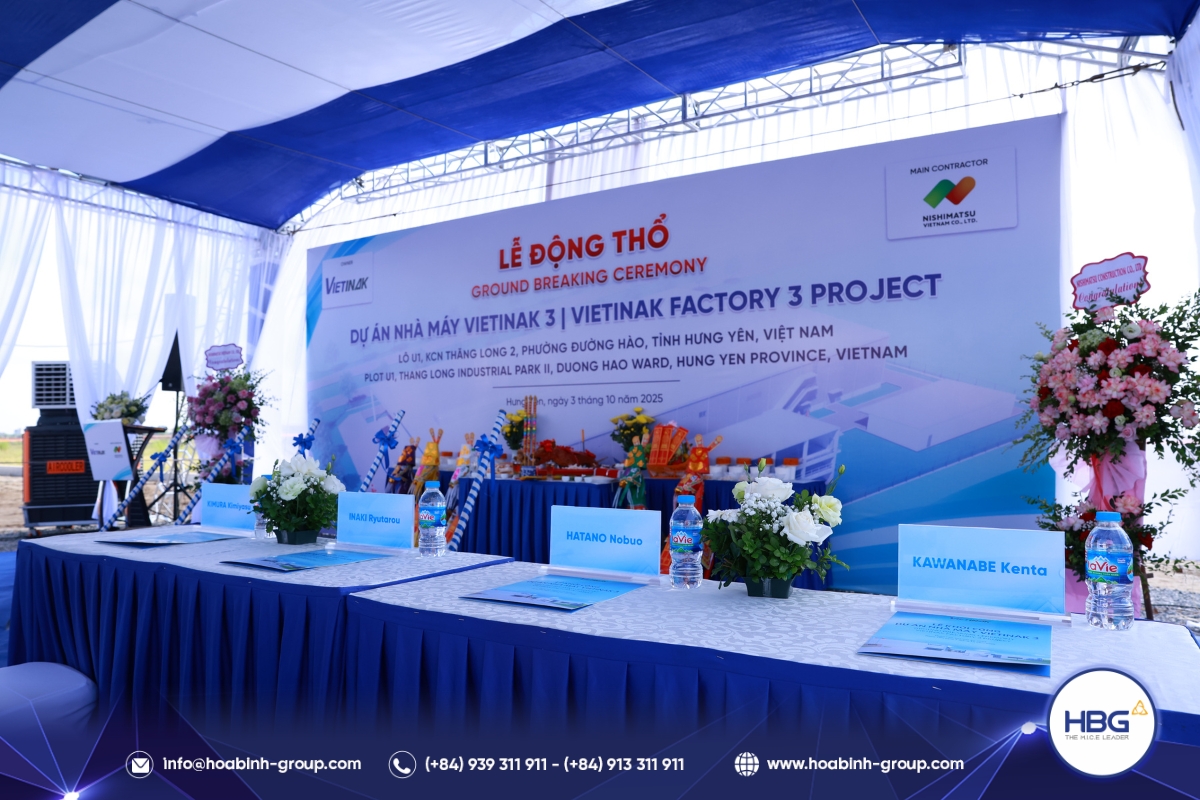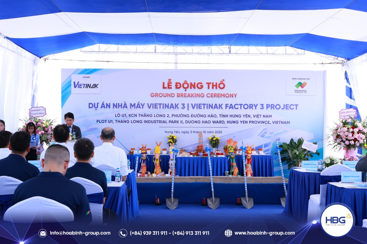 Ngày 03/10/2025, tại KCN Thăng Long II (Hưng Yên), Công ty Vietinak đã long trọng tổ chức Lễ động thổ Nhà máy Vietinak 3, với sự đồng hành của Nishimatsu Vietnam Co., Ltd. – đơn vị tổng thầu. Sự kiện đánh dấu bước ngoặt quan trọng trong chiến lược mở rộng quy mô sản xuất, tạo thêm nhiều việc làm và đóng góp tích cực cho sự phát triển kinh tế địa phương.