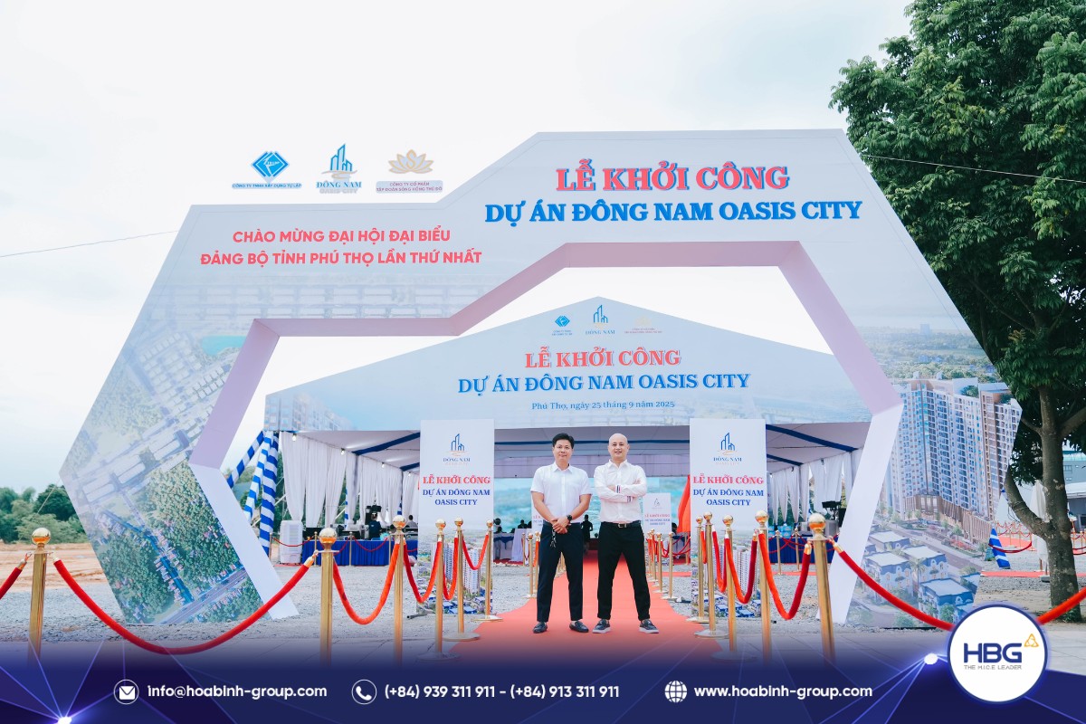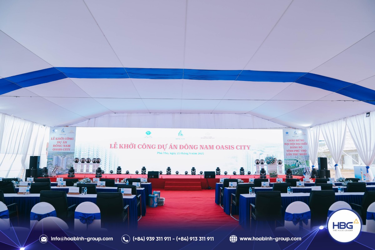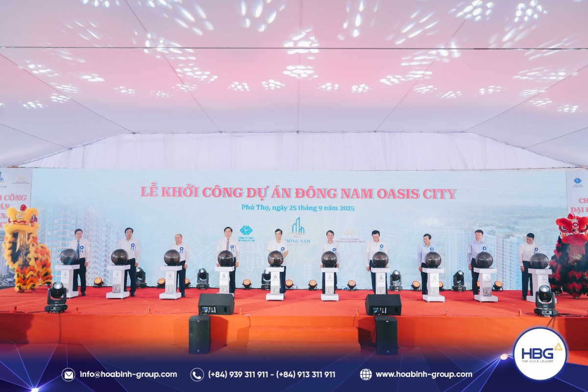 Lễ khởi công dự án Khu đô thị mới Đông Nam Oasis City đã khép lại với những khoảnh khắc ấn tượng, đánh dấu bước chuyển mình quan trọng cho diện mạo đô thị tương lai. Đồng hành cùng sự kiện, HBG mang đến không gian chỉn chu và trải nghiệm trọn vẹn – nơi từng chi tiết đều được thiết kế để khắc họa rõ nét tinh thần chuyên nghiệp và cảm xúc bền sâu.